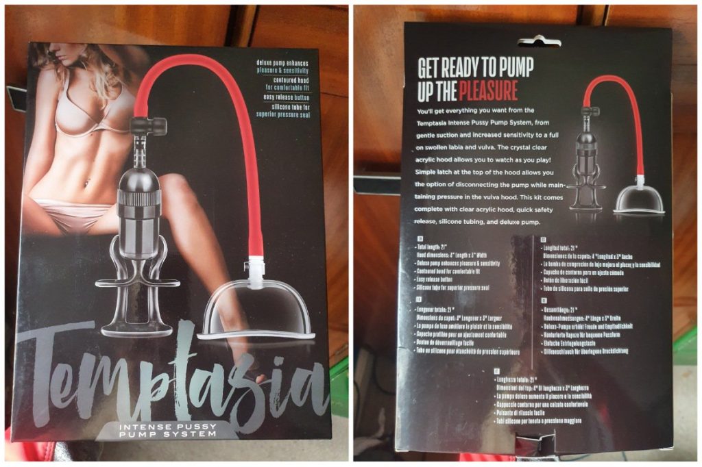 When the team at Betty’s Toy Box offered to send me some products to review I looked at the options. The item that initially took my fancy first was the Temptasia Intense Pussy Pump System. I’ve made my own clit pump, and tried breast pumps. I’d also tried a lower end pussy pump once upon a daydream, and not managed to make the suction work. It would be years before I learnt about using lube to form the seal for suction, and in the interim a clear out had taken place so I have no idea if the original device would have worked, though I seam to remember a silicon seal which didn’t quite meet at the edges.